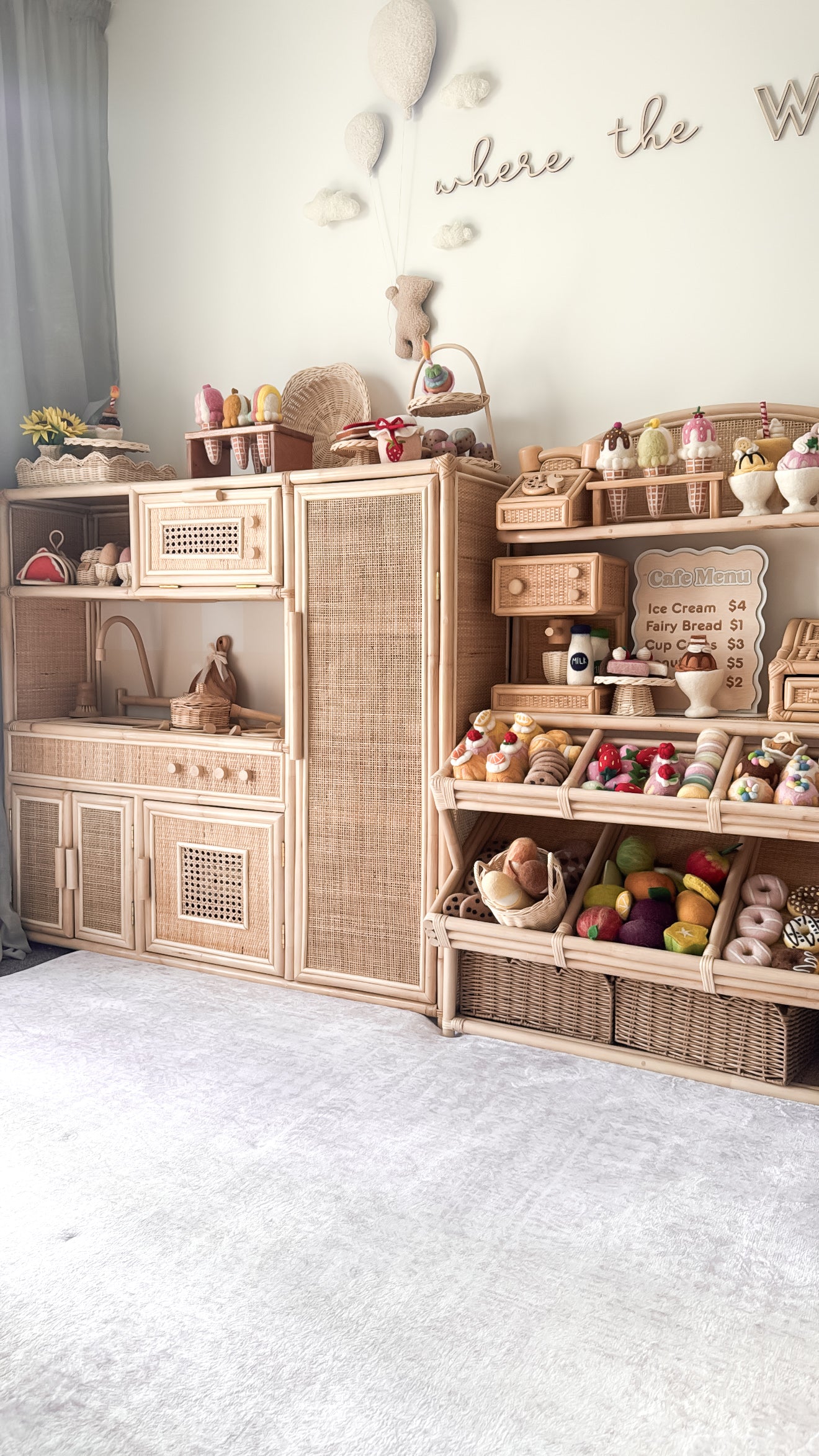Playing shops has never looked so cute with our gorgeous market stall perfect for those kids who love to role play check out our rattan cash register to complete the ultimate role playing experience.